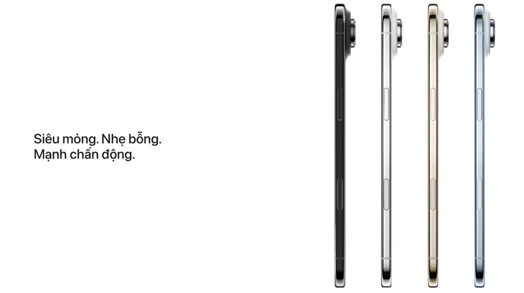 iPhone Air Series là một dòng sản phẩm mới, được định vị bởi thiết kế mỏng và nhẹ. Thân máy có độ mỏng 5.6 mm và khối lượng 165 gram. Khung máy được làm từ hợp kim titan tái chế, một lựa chọn vật liệu nhằm cân bằng giữa trọng lượng và độ cứng cáp cho thiết bị.