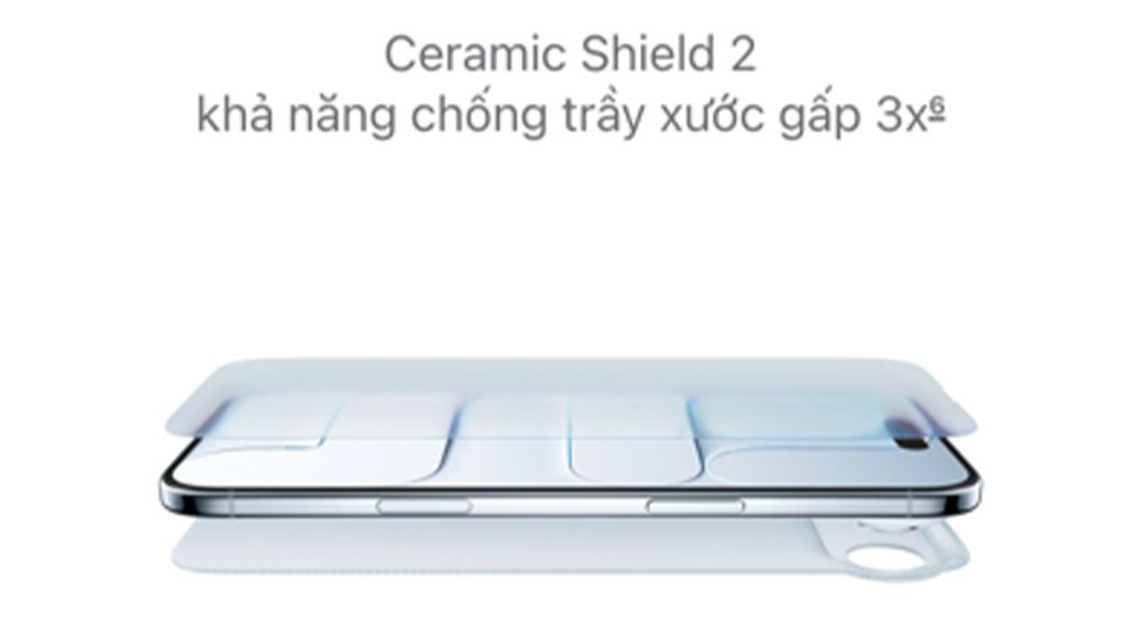 Về độ bền, mặt sau của máy sử dụng kính Ceramic Shield. Mặt trước được trang bị kính Ceramic Shield 2, một loại vật liệu được xử lý để tăng khả năng chống trầy xước lên gấp 3 lần so với thế hệ trước, qua đó tăng cường bảo vệ cho màn hình trước các va chạm và ma sát thông thường.