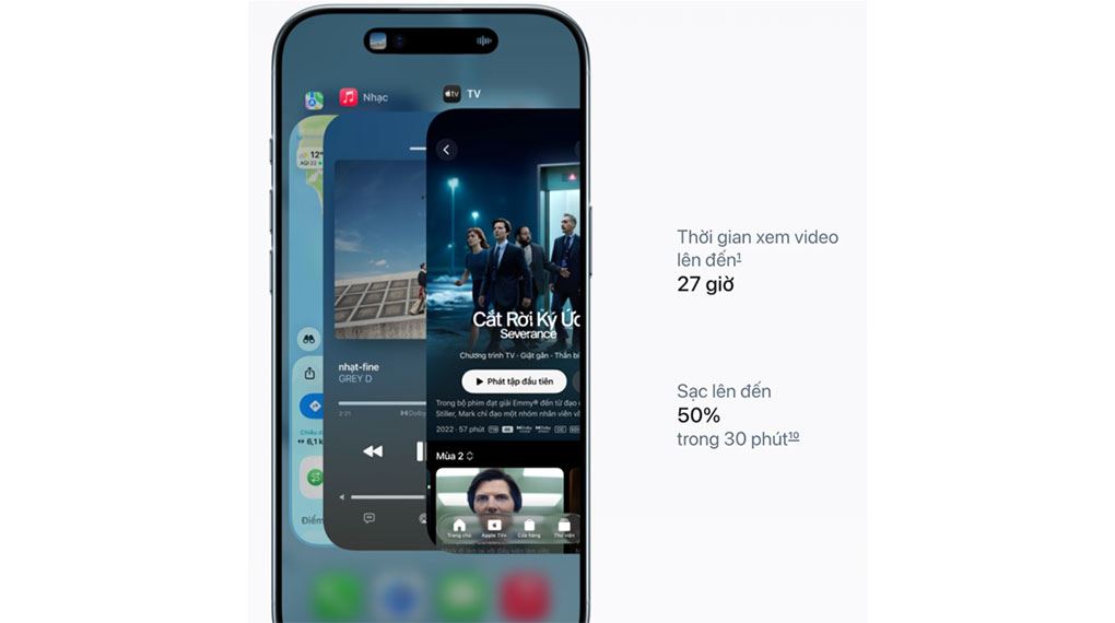 Công nghệ ProMotion tiếp tục là điểm nhấn trên màn hình iPhone, với khả năng điều chỉnh tần số quét linh hoạt lên đến 120Hz. Nhờ đó, thao tác cuộn và chạm trở nên mượt mà, trong khi nội dung tĩnh có thể giảm tần số quét để tiết kiệm pin. Màn hình cũng hỗ trợ chuẩn HDR10 và Dolby Vision, mang đến chất lượng hiển thị sống động và chi tiết hơn.