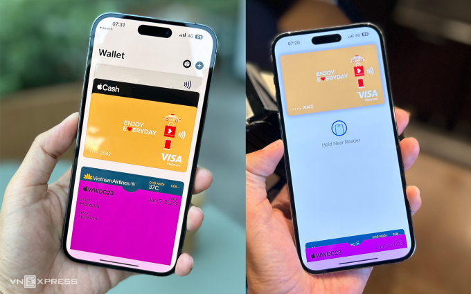 Thẻ ngân hàng tích hợp vào ứng dụng Apple Wallet. Ảnh: Tuấn Hưng